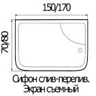 Ванна акриловая WEMOR 170/80/55 S с сидением со съемным экраном.